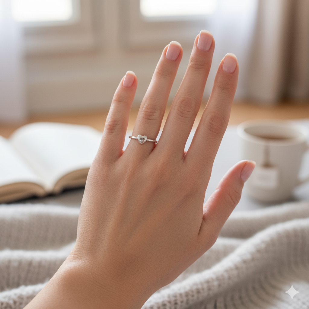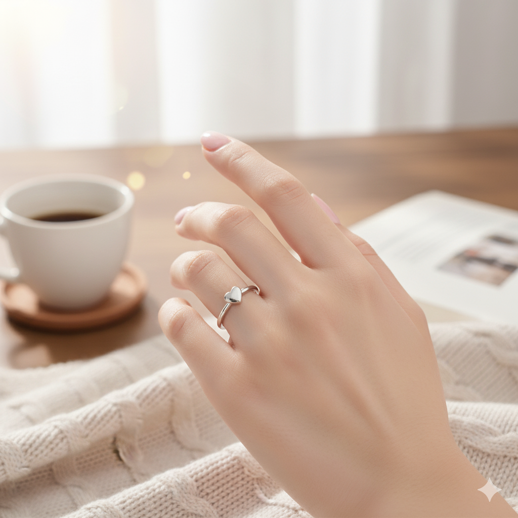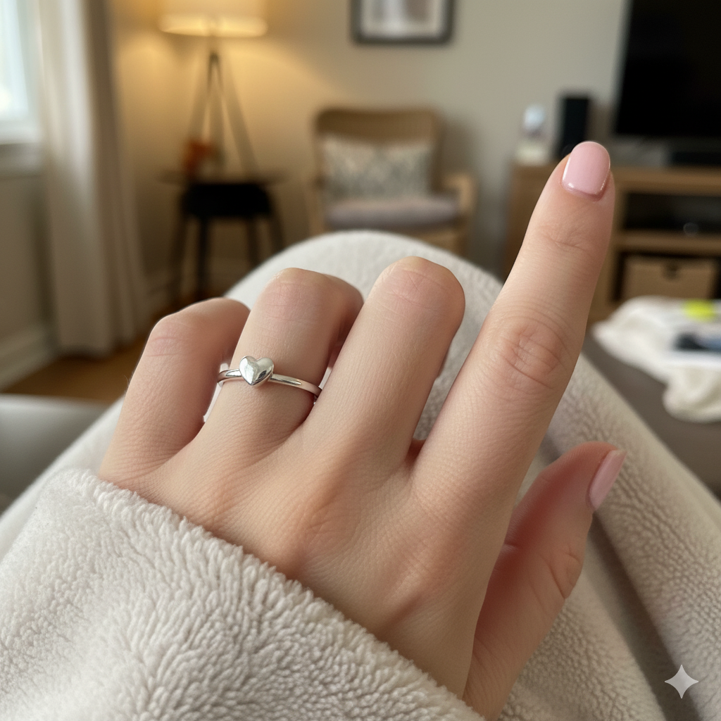 "My partner proposed with a traditional ring, but we wanted something we could both wear every day that symbolized our connection. These matching rings were perfect! They're subtle enough to wear with everything, but when we hold hands, the hearts align and it's such a sweet reminder of our love. The adjustable design means they fit us both perfectly. We get compliments all the time, and I love telling people the story behind them. Best purchase we've made as a couple."