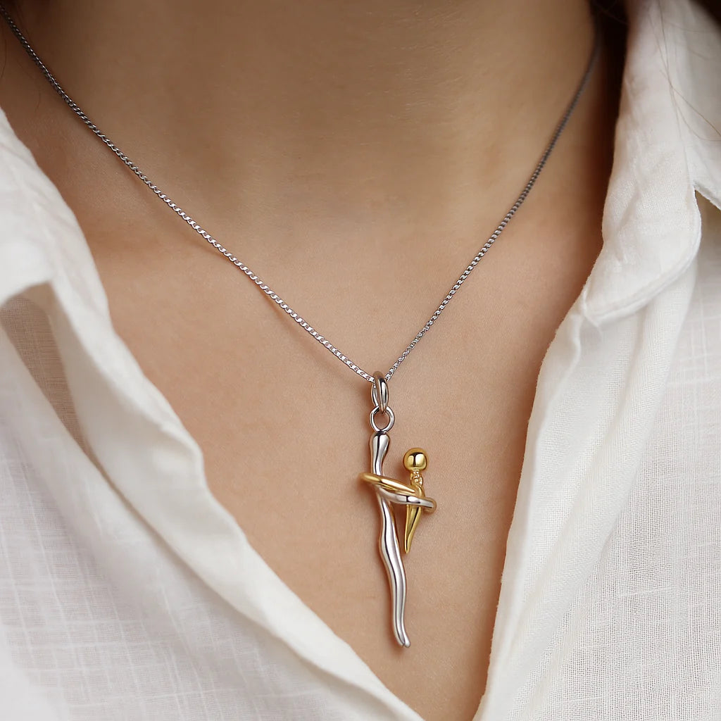 - 1 × Mommy & Me Hug Necklace (Two-Tone Silver & Gold Pendant)